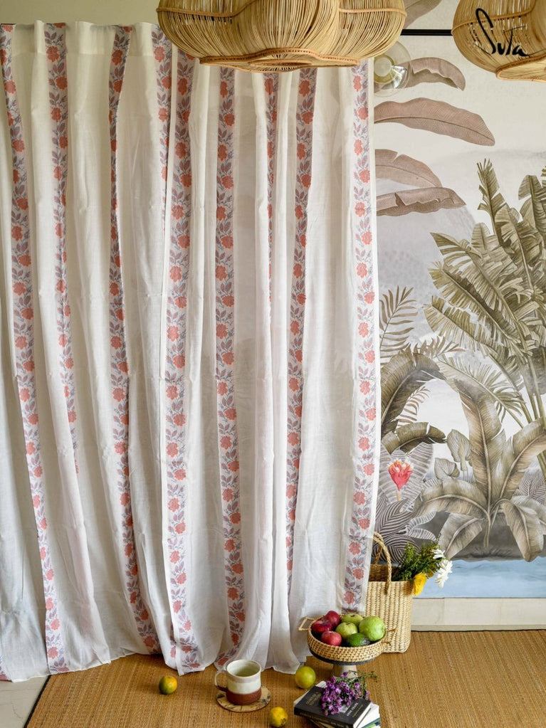 Infuse your home with warmth and airiness when you hang up these gorgeous mul cotton curtains woven with floral motifs.