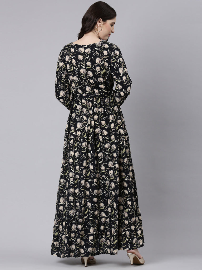 Neeru's Black Printed Floral Dress