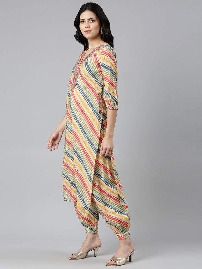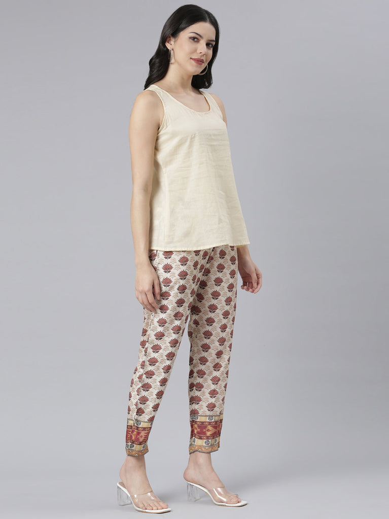 Neeru's Beige Regular Straight Printed Readymade Suits