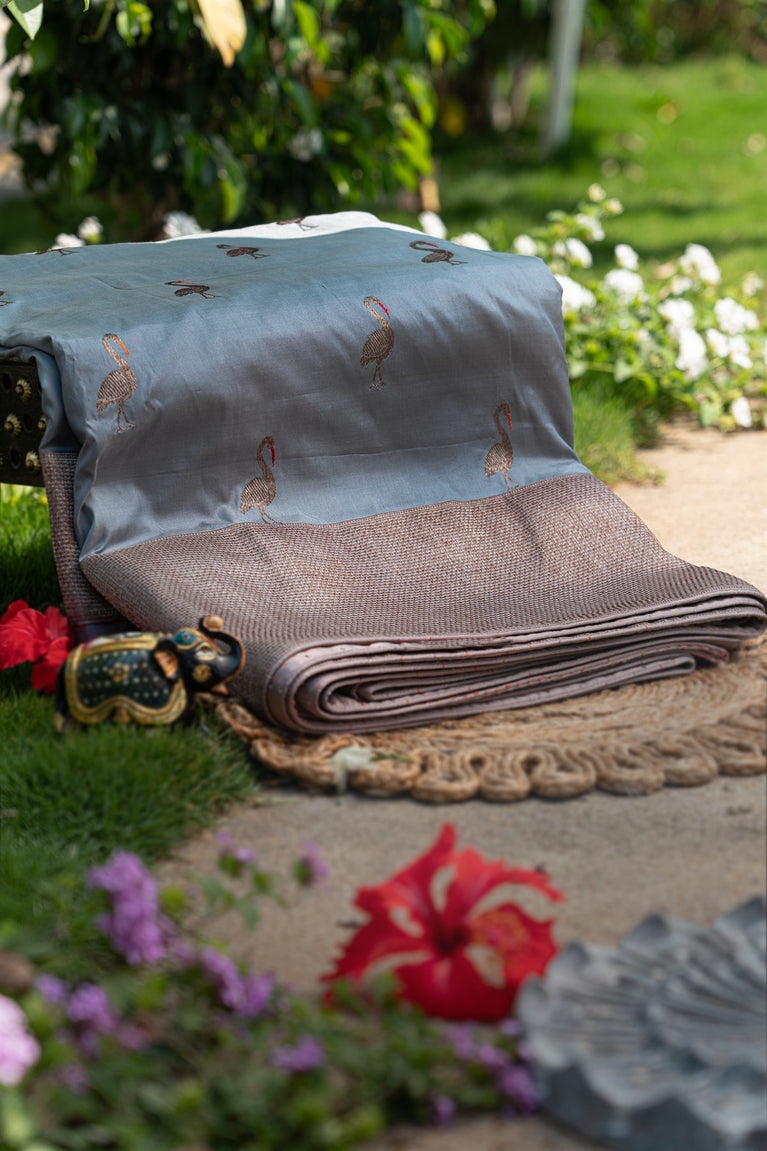 Mandir Grey & Light Brown Banarasi Lines Saree