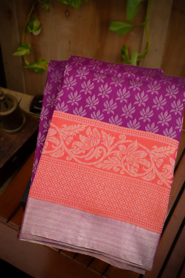 Mandir Dark Purple & Coral Coimbatore All Over Saree
