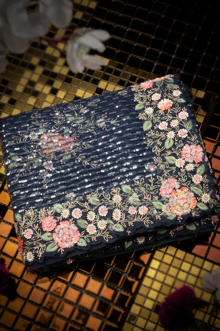 Mandir Navy Blue & Navy Blue Fancy Work Saree