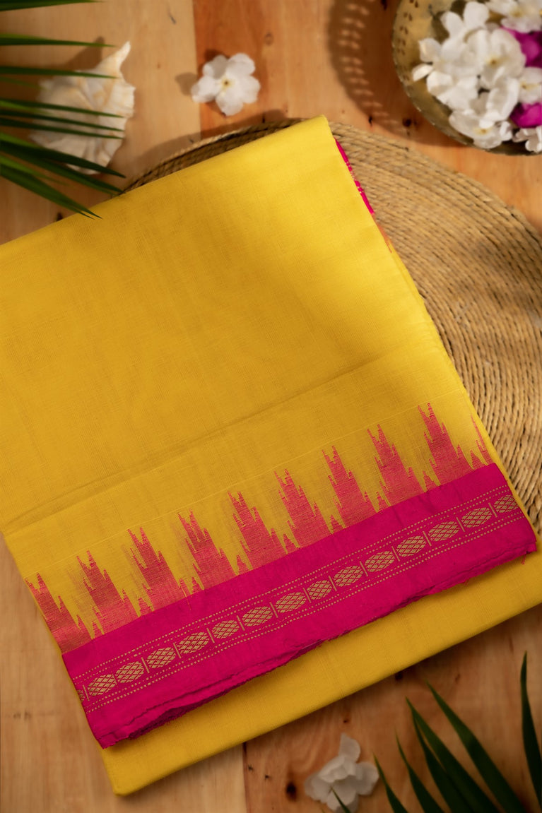 Mandir Yellow & Yellow Kanchipuram Plain Saree