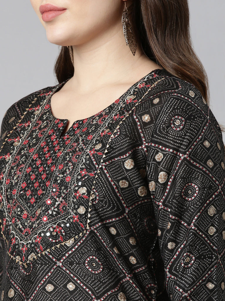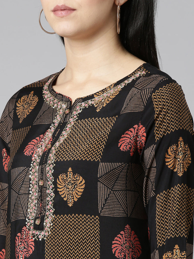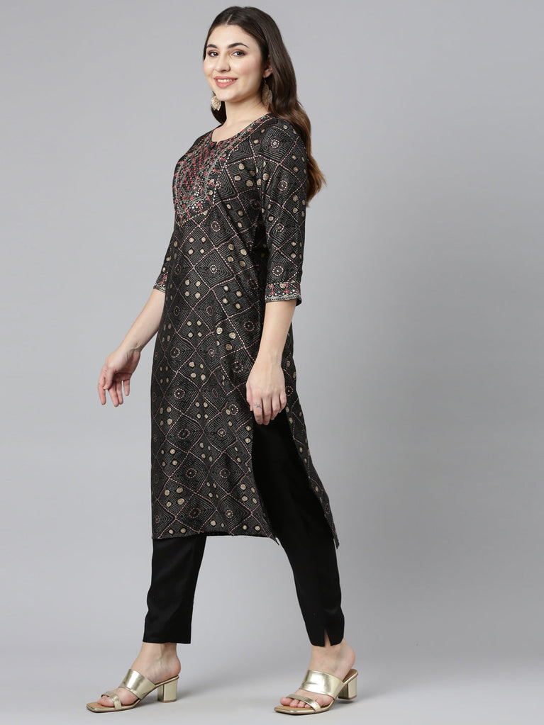 Style Up Your Wardrobe With The Irresistibly Chic Neeru's Black Regular Straight Printed Kurtas!