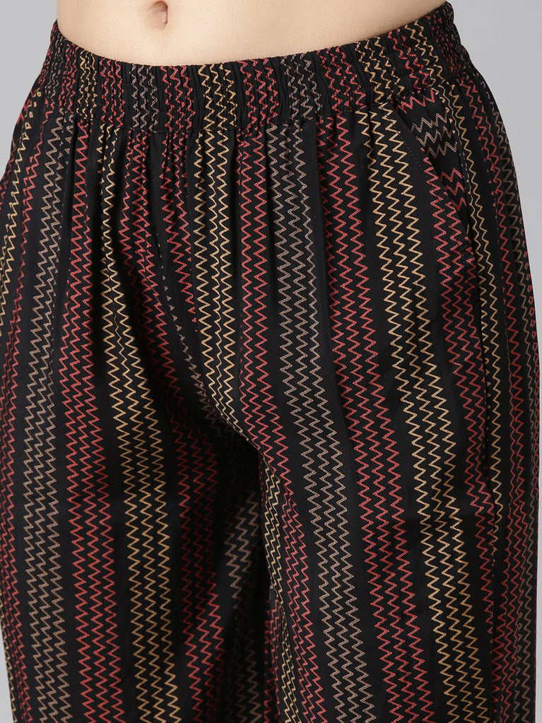 Neeru's Black Regulars -- Stylishly Straight And Printed To Perfection!