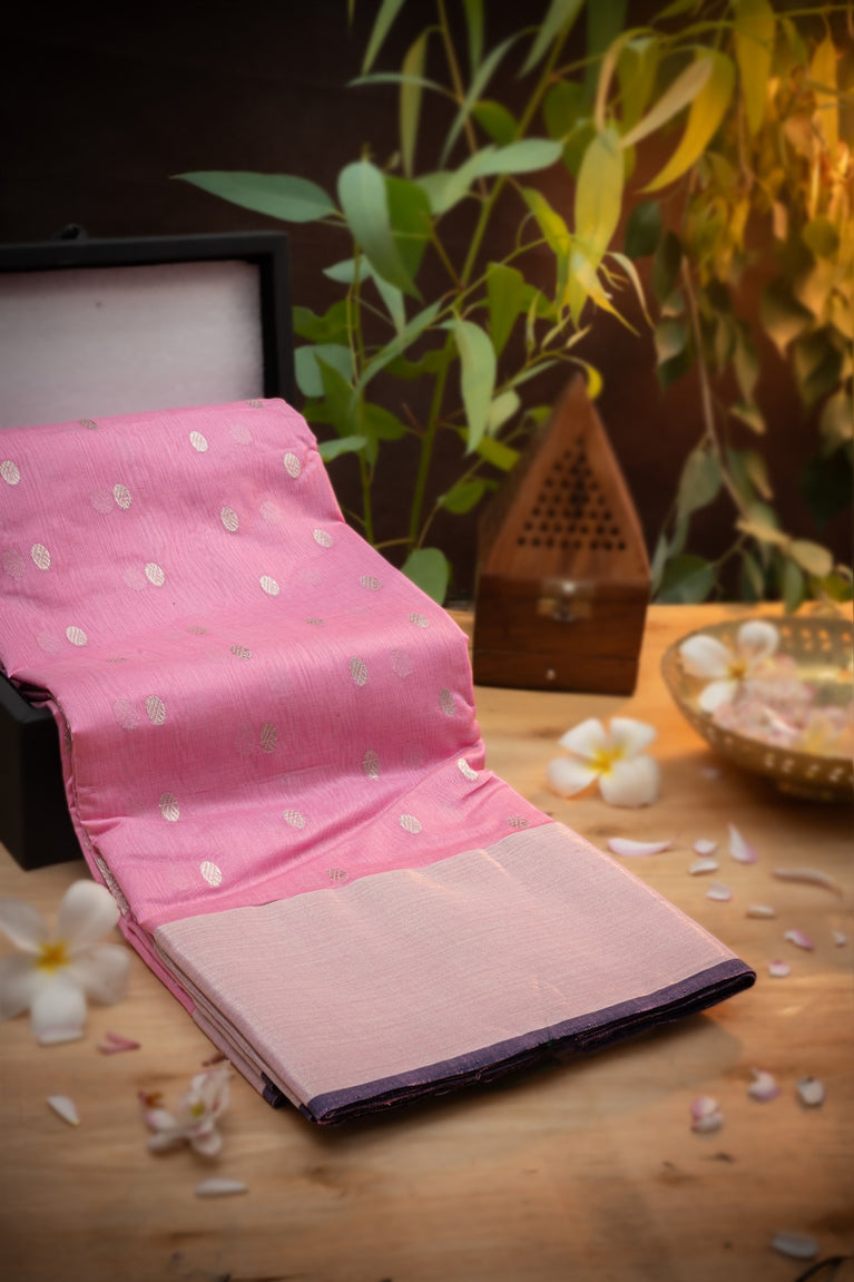 Varamahalakshmi Baby Pink & Silver Chanderi Buttis Saree