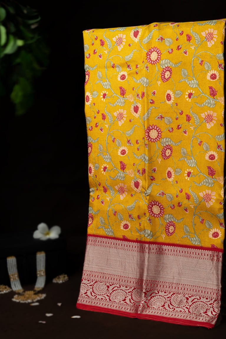 Varamahalakshmi Mustard & Red Fancy Digital Print Saree