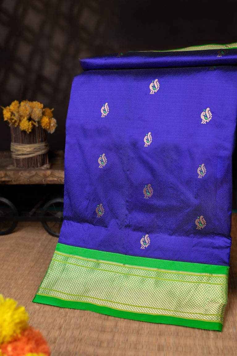 Varamahalakshmi Royal Blue & Green Paithani Buttis Saree