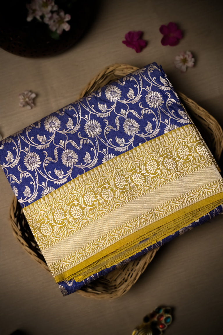 Varamahalakshmi Royal Blue & Mustard Banarasi Jaal Saree