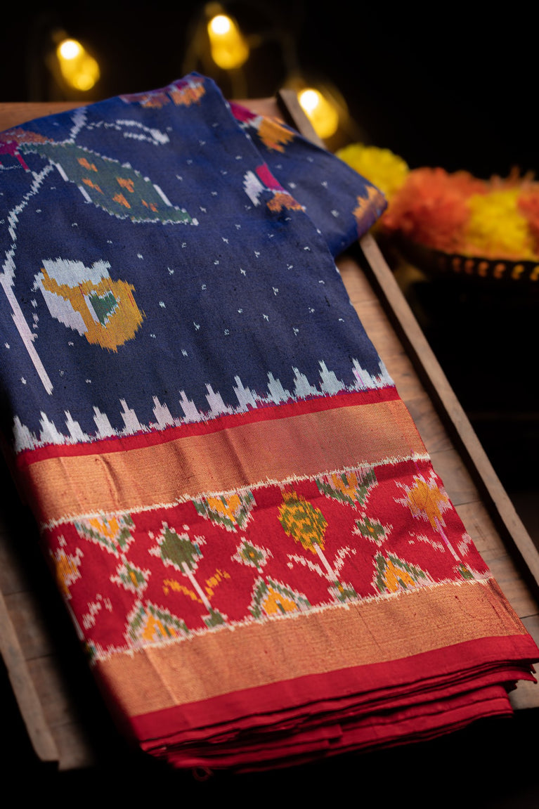 Varamahalakshmi Royal Blue & Olive Green Patola Ikat Saree