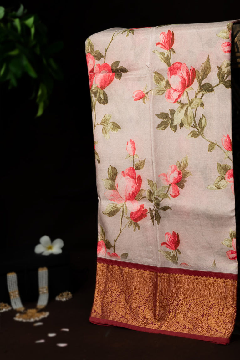 Varamahalakshmi Rose Pink & Maroon Fancy Digital Print Saree