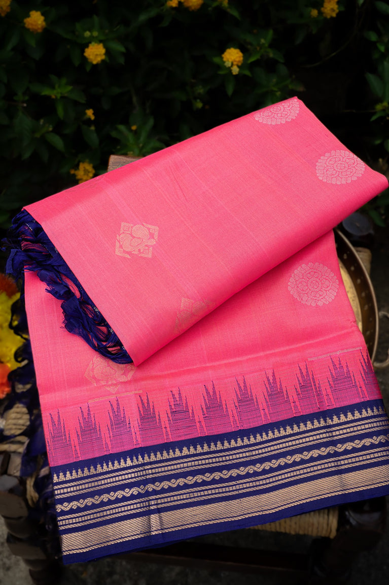 Varamahalakshmi Rose Pink & Navy Blue Kuppadam Motifs Saree