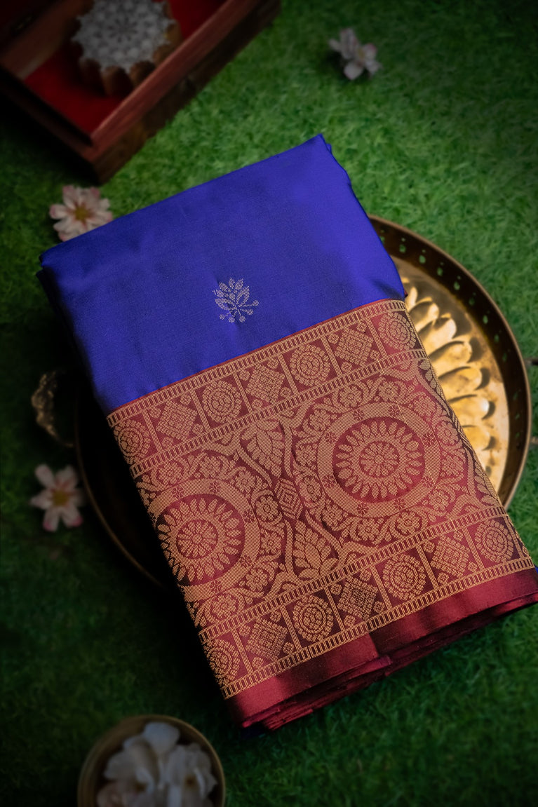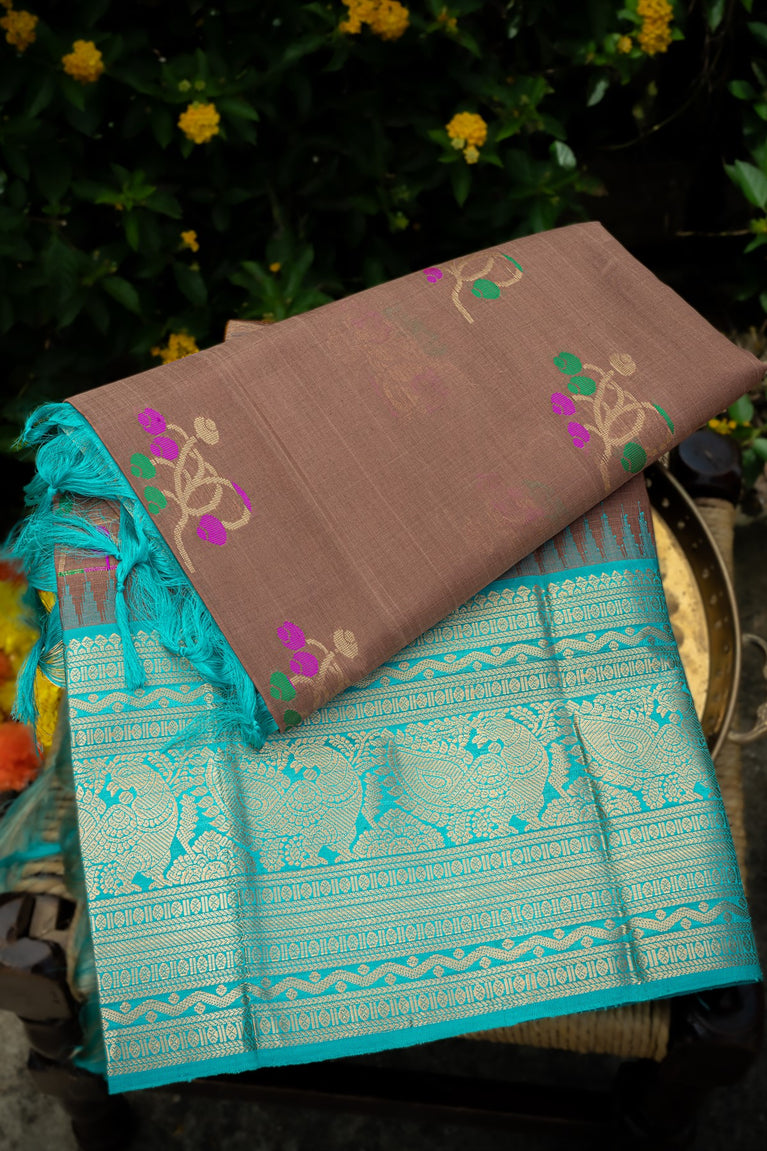 Varamahalakshmi Royal Blue & Brown Coimbatore Buttis Saree