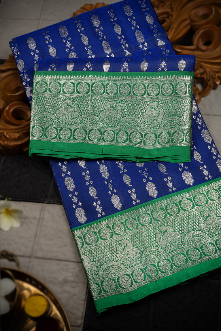 Varamahalakshmi Royal Blue & Green Kancheepuram Buttis Saree
