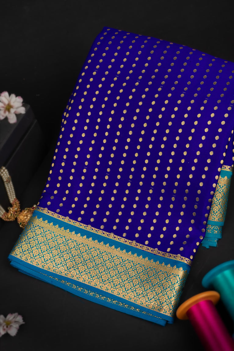 Varamahalakshmi Royal Blue & Blue Mysore Polka Dots Saree