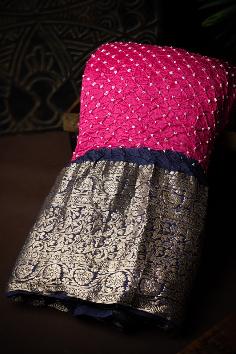 Varamahalakshmi Rose Pink & Navy Blue Bandhani Bandhani Saree