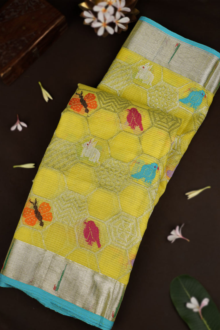 Varamahalakshmi Yellow & Sea Blue Zari Kota Jaal Saree