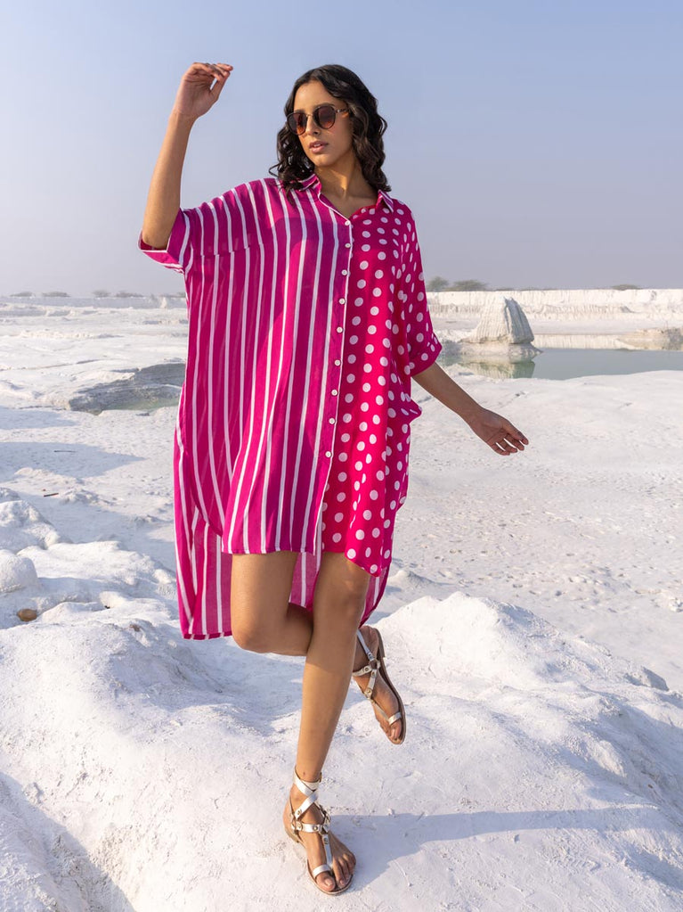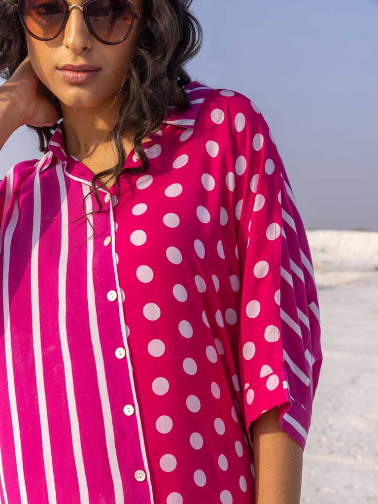'I Love Pink' Oversized Asymmetrical Modal Long Shirt
