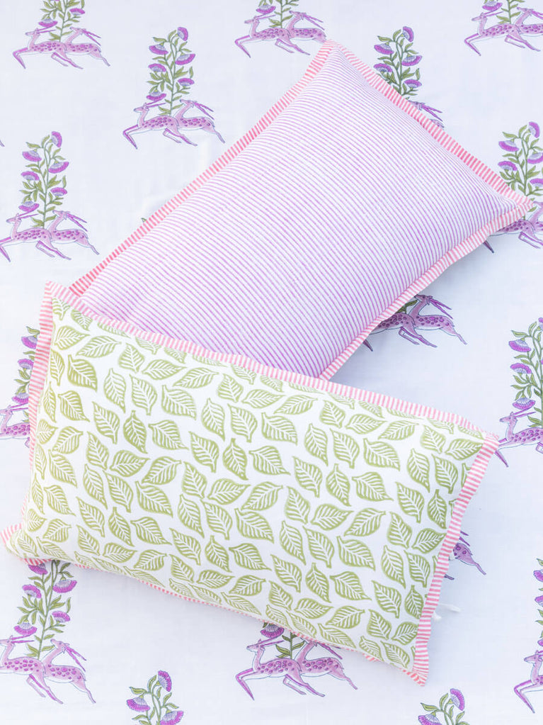 Mystical Lotus Block Printed Cotton Cushion Cover - 16 Inch