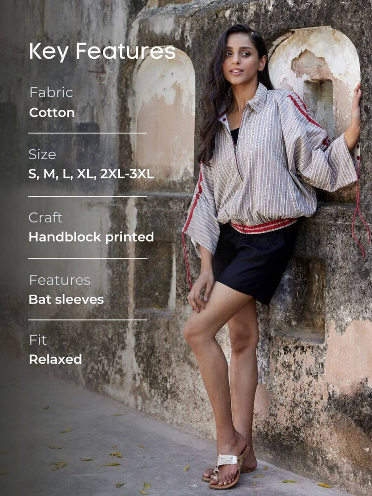 Nomad Kantha Embroidered Block Printed Bomber Jacket