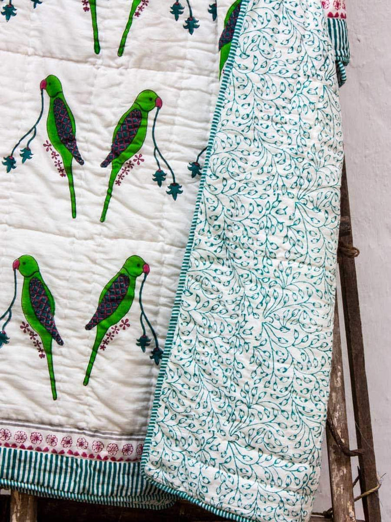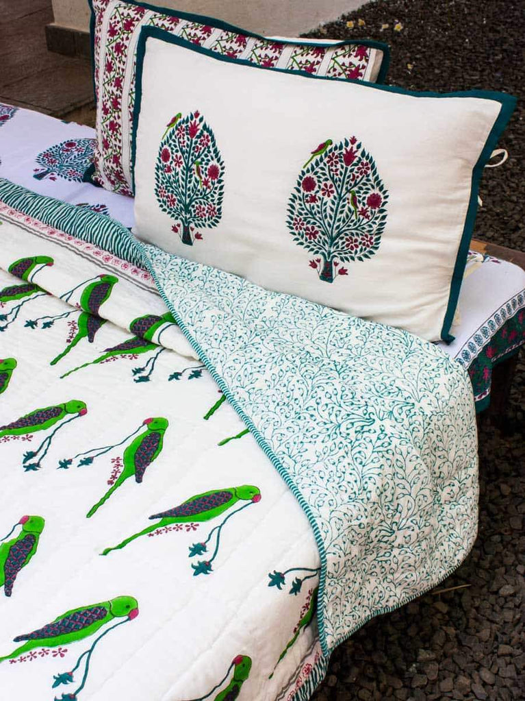 Parijat Hand Block Printed Cotton Cushion Cover - 20 Inch