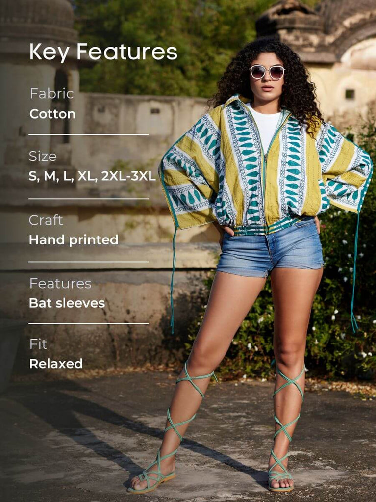 Rhapsody Kantha Embroidered Block Printed Bomber Jacket