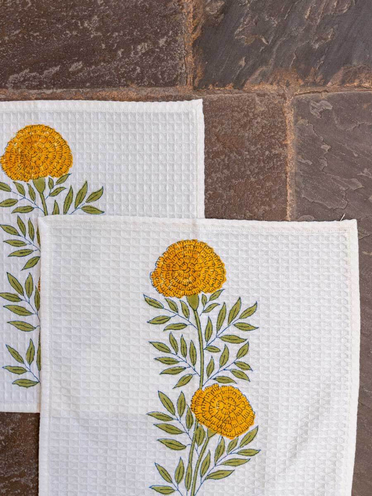 Set of 2 - Golden Bloom Block Printed Face Towels
