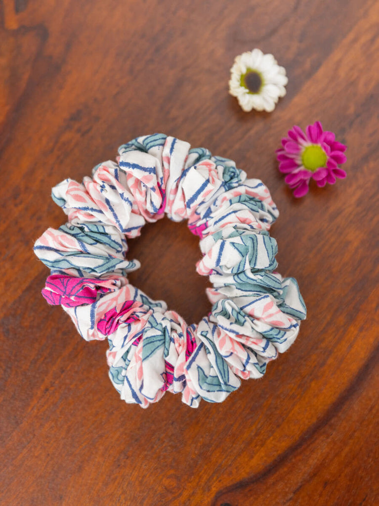Set of 2 - Floral Turquoise Cotton Scrunchie