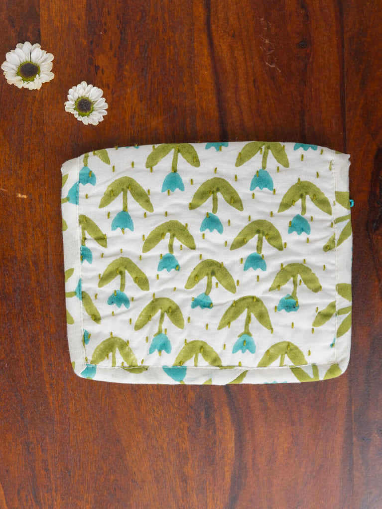 Tiny Tulip Hand Block Print Cotton Travel Pouch