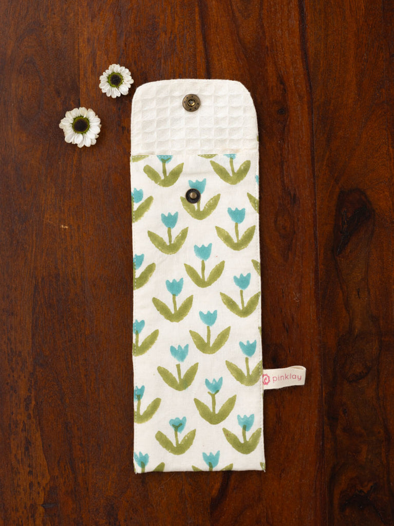 Tiny Tulip Block Printed Toothbrush Travel Pouch