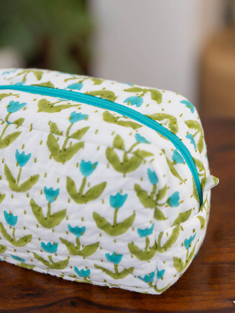 Tiny Tulip Block Printed Cotton Travel Vanity Case