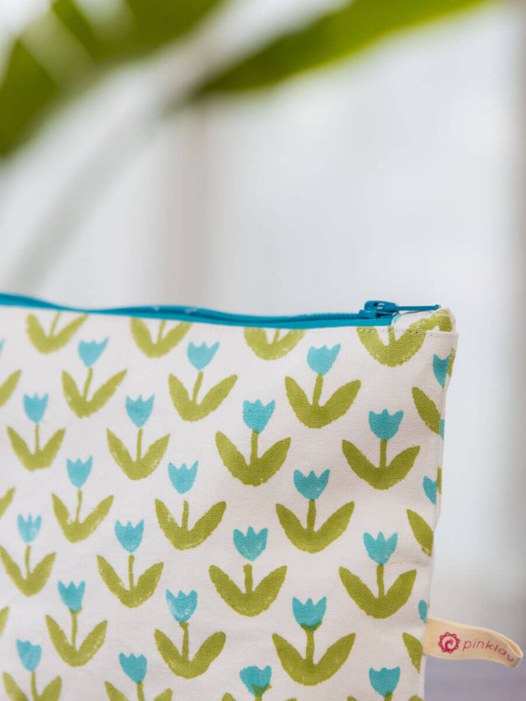 Tiny Tulip Block Print Cotton Travel Case