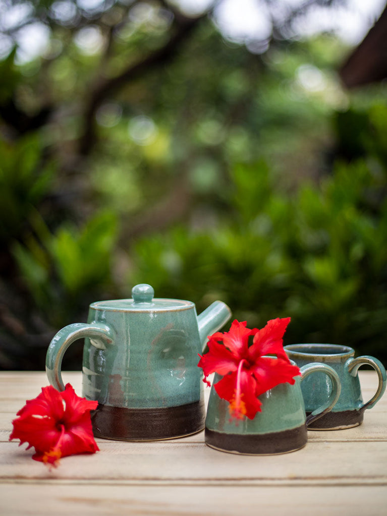 Turquoise Fall Hand-Thrown Dimpled Ceramic Tea Pot Set