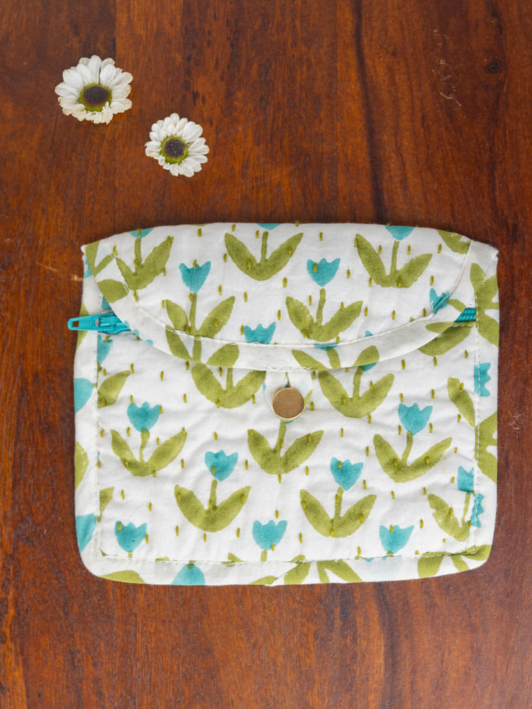 Tiny Tulip Block Print Cotton Wallet