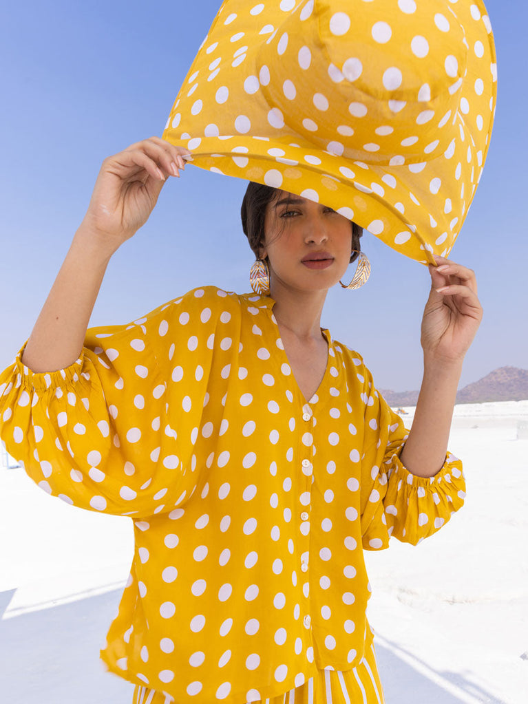 Yellow Umbrella Organic Cotton Block Printed Shirt