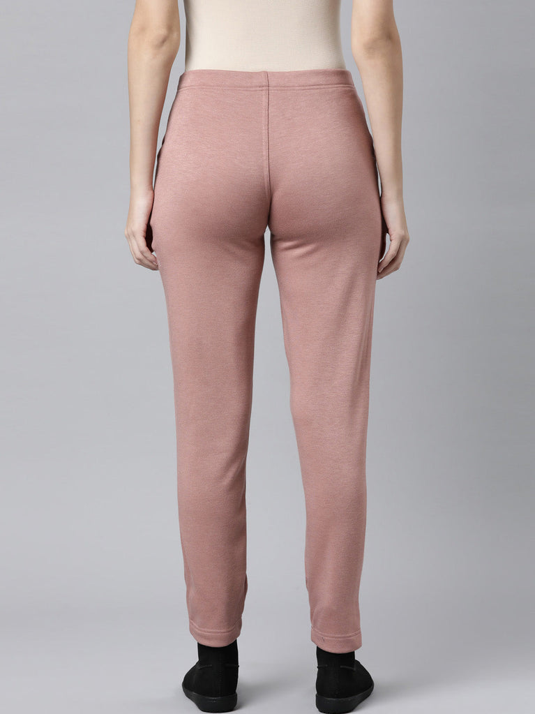 Stay warm this winter in the Solid Dusty Pink Mid Rise Ultra Warm Treggings. Made from Fleece, this mid rise slip on trousers with elasticised waistband & slim fit are perfect for board meetings or night out in the town. It has two side pockets with ankle length.