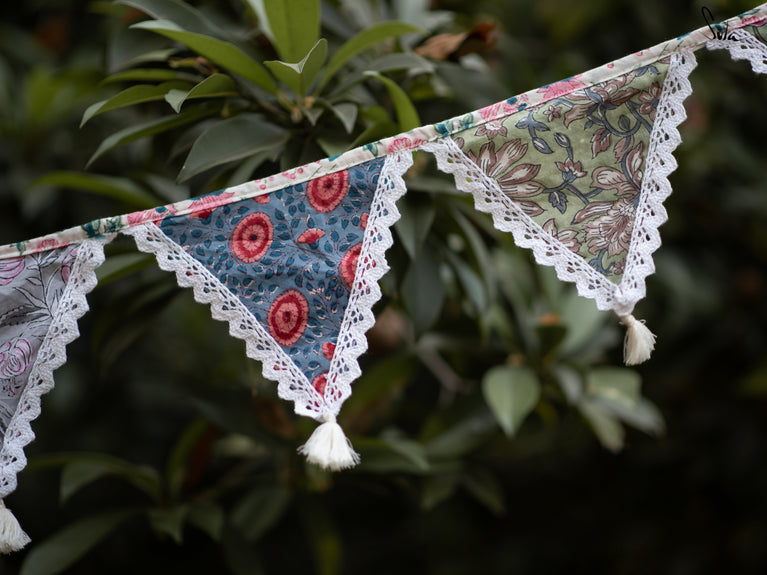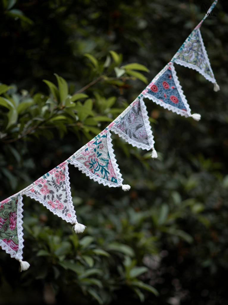 This is a versatile bunting that utilises leftover cotton slub fabric and transforms into a beautiful decor accent.