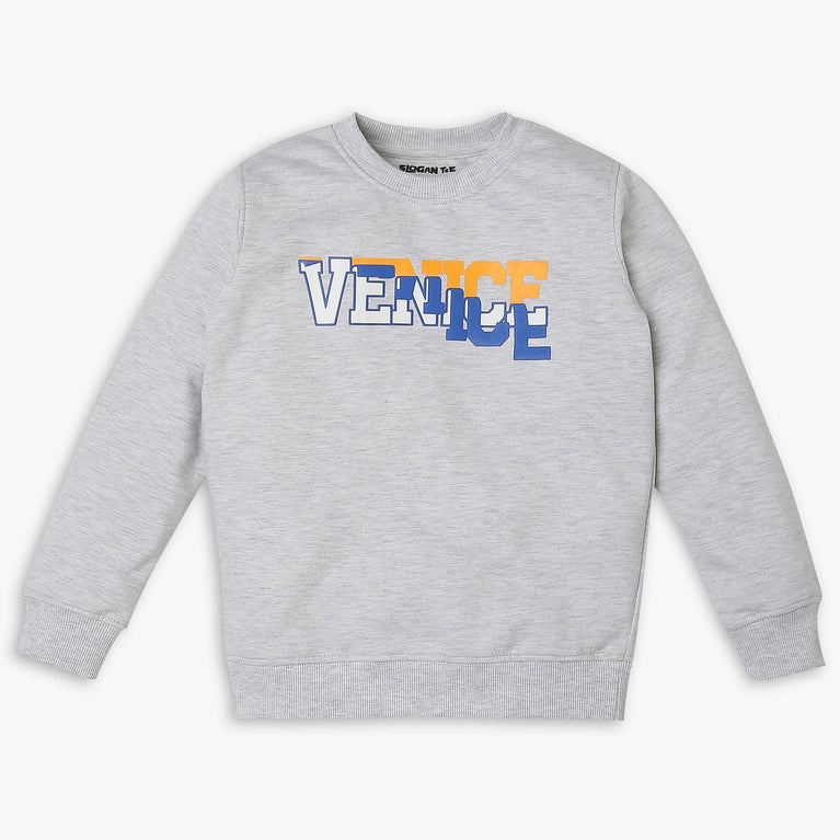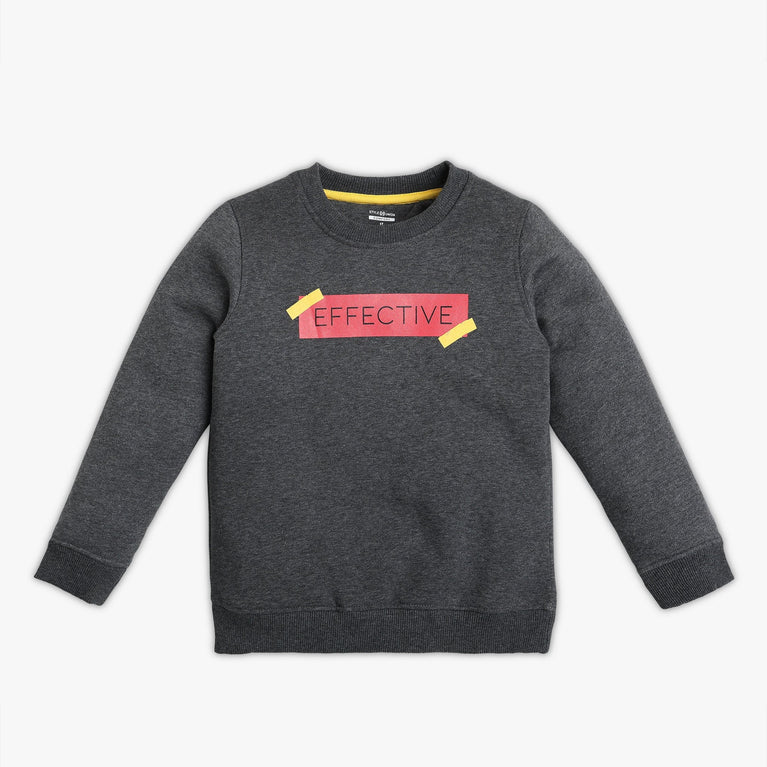 This trendy slogan sweat tee, crafted from a durable cotton-polyester blend, is designed to keep your child comfortable and stylish. Featuring a classic crew neck and full sleeves, this regular-fit tee is perfect for casual outings and everyday wear.