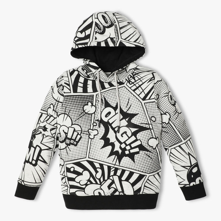 This trendy printed hoodie sweat tee is perfect for your child's casual wardrobe. Made from soft cotton, it features a cozy hood and full sleeves, ensuring comfort and style for everyday wear.