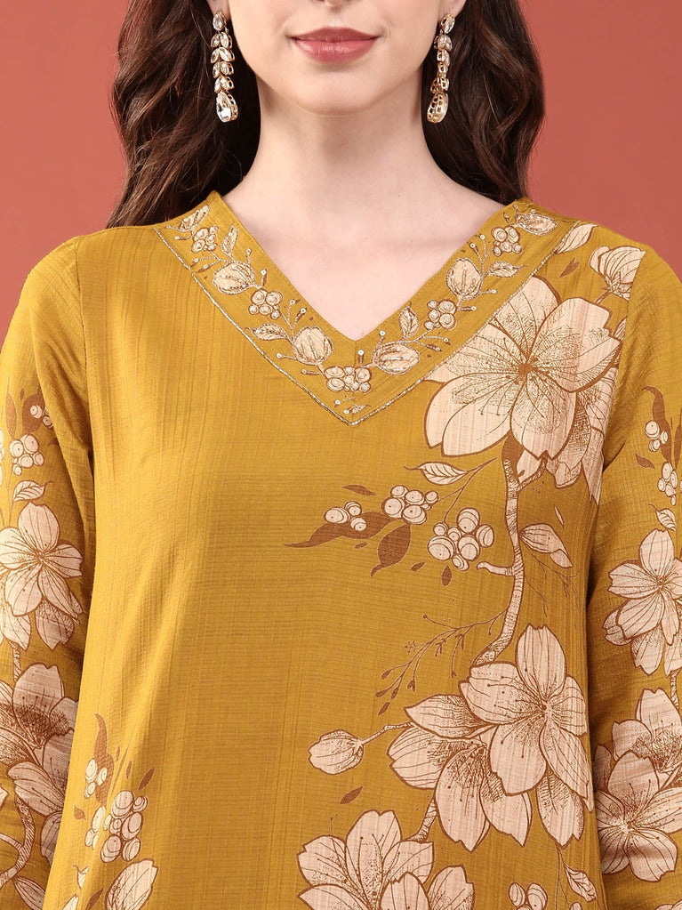 M Green Viscose Rayon Floral Printed Two Piece Set