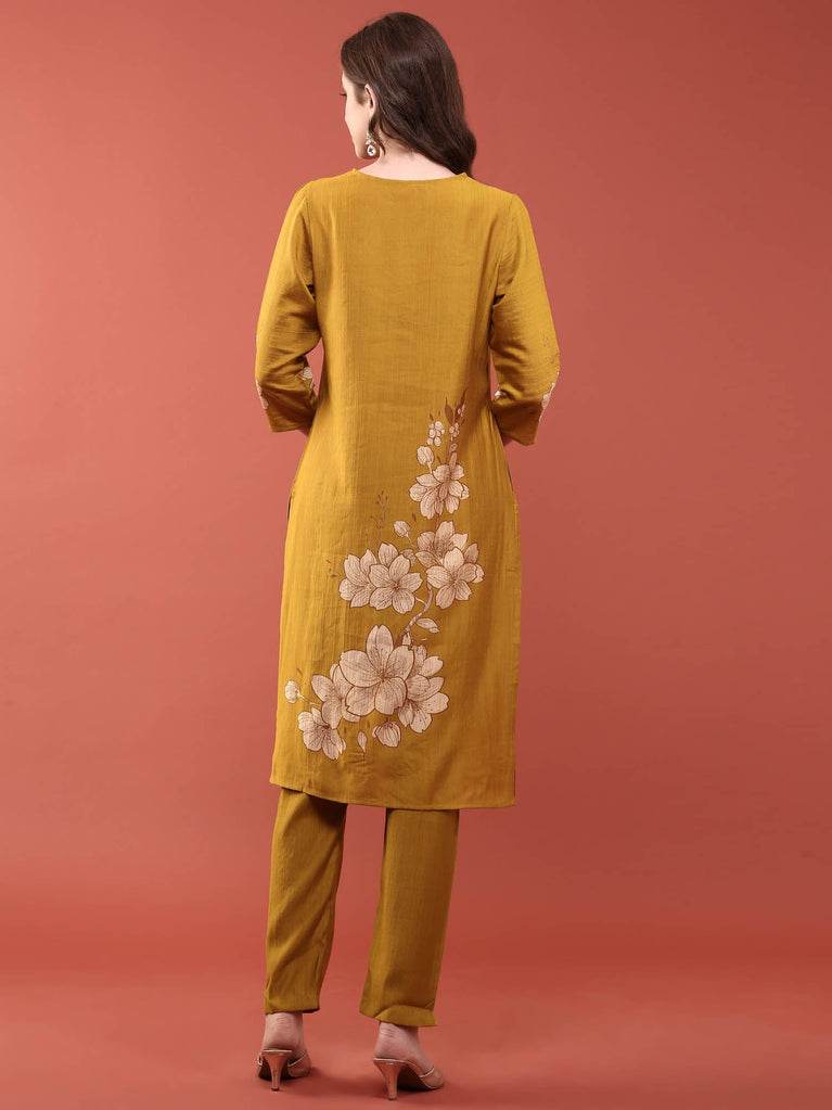 Elevate your wardrobe with this sophisticated two-piece ensemble crafted from premium viscose rayon. The lush green hue provides a versatile canvas, while the delicate floral print adds refined elegance to your everyday styling. Viscose rayon's natural breathability and fluid drape ensure all-day comfort without compromising on polish.