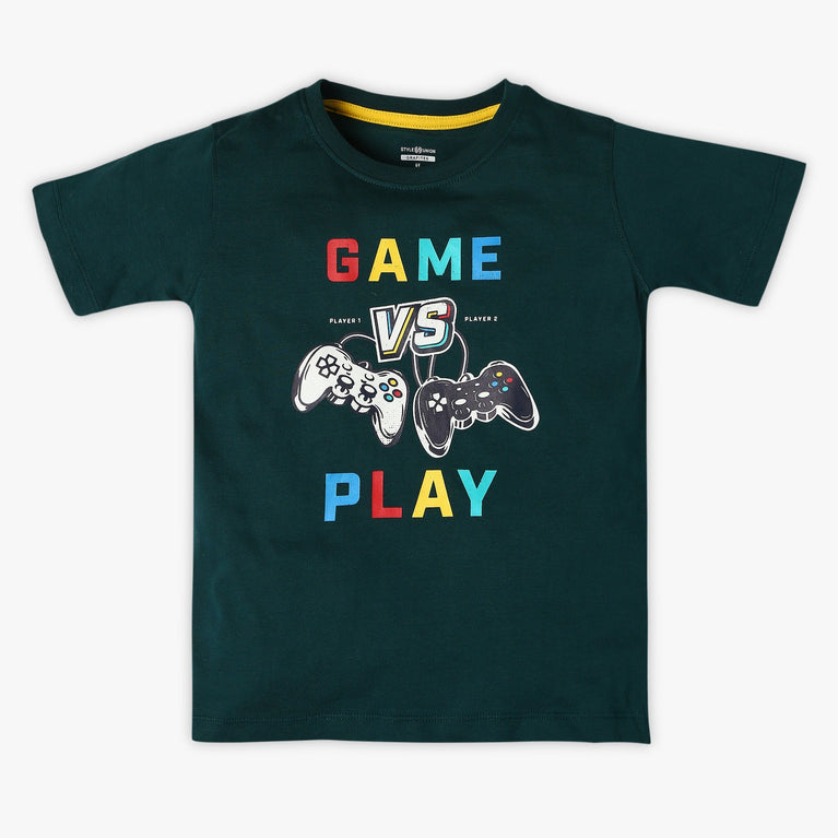 This graphic t shirt theme, t-shirt has a crew neck and half sleeve. Made from cotton, your kid's feel comfortable wearing a product.