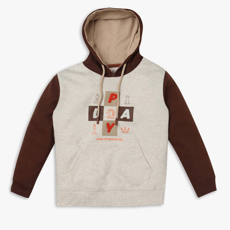 These embroidered pattern sweat tees has hoodie and full sleeve. Made from cotton polyester, your kid's feel comfortable wearing the product.
