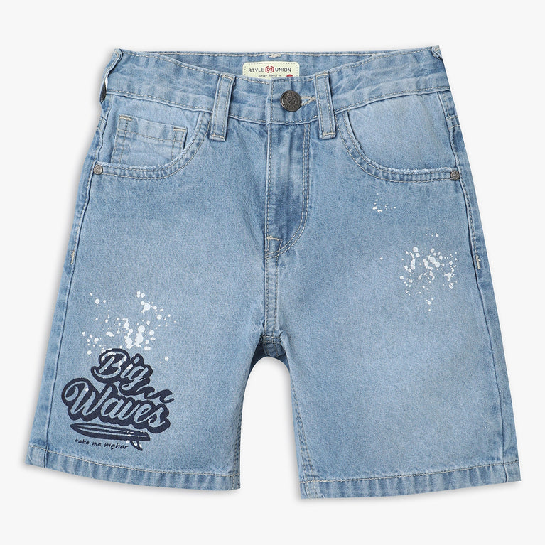 These denim fashion shorts theme, embellished pattern regular fit shorts has mid rise waist. Made from cotton, your kid's feel comfortable wearing the product.