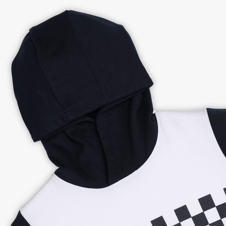 This solid pattern sweat tees has a hoodie and full sleeve. Made from cotton, your kid's feel comfortable wearing the product.