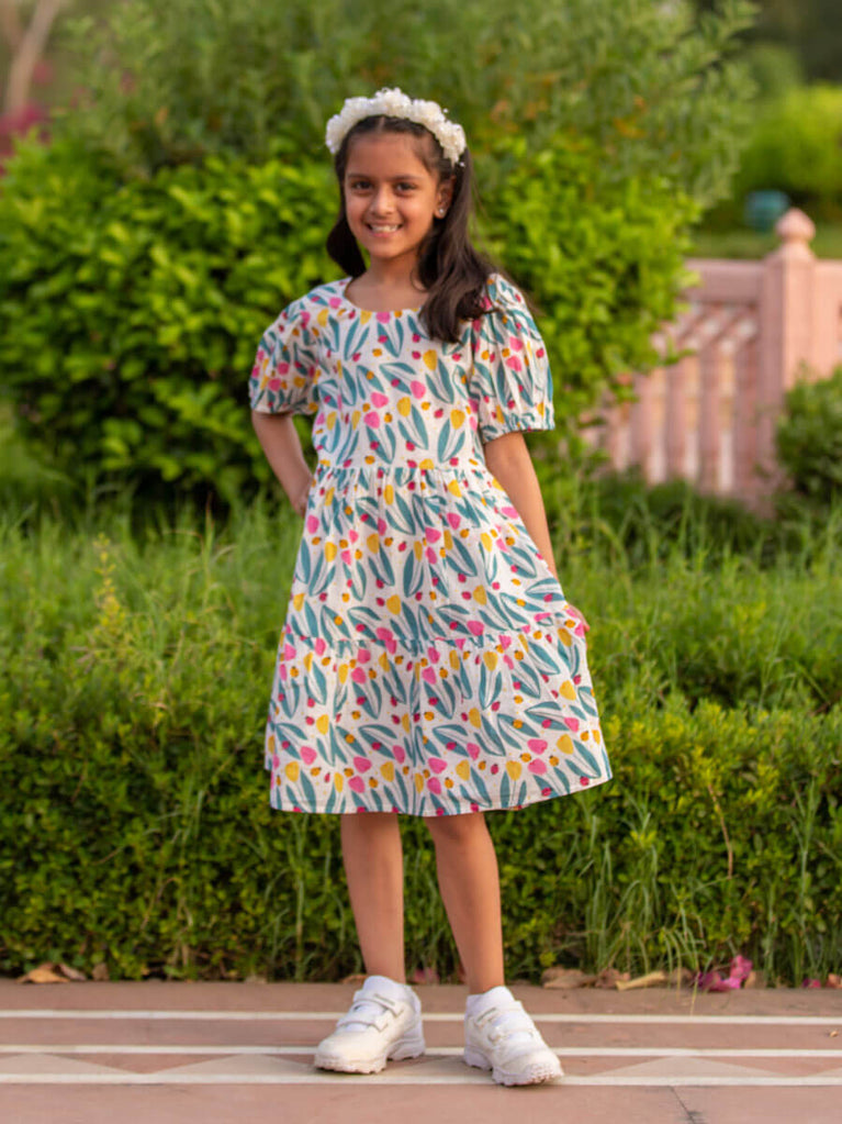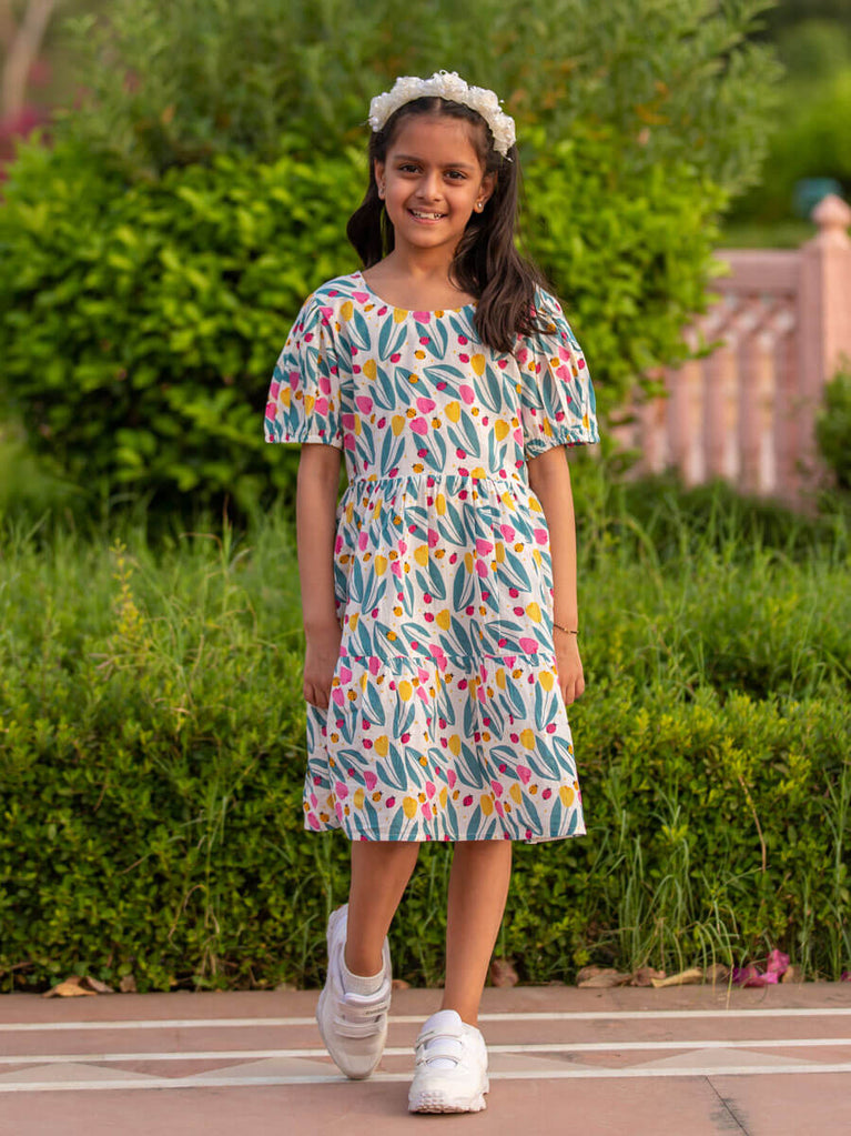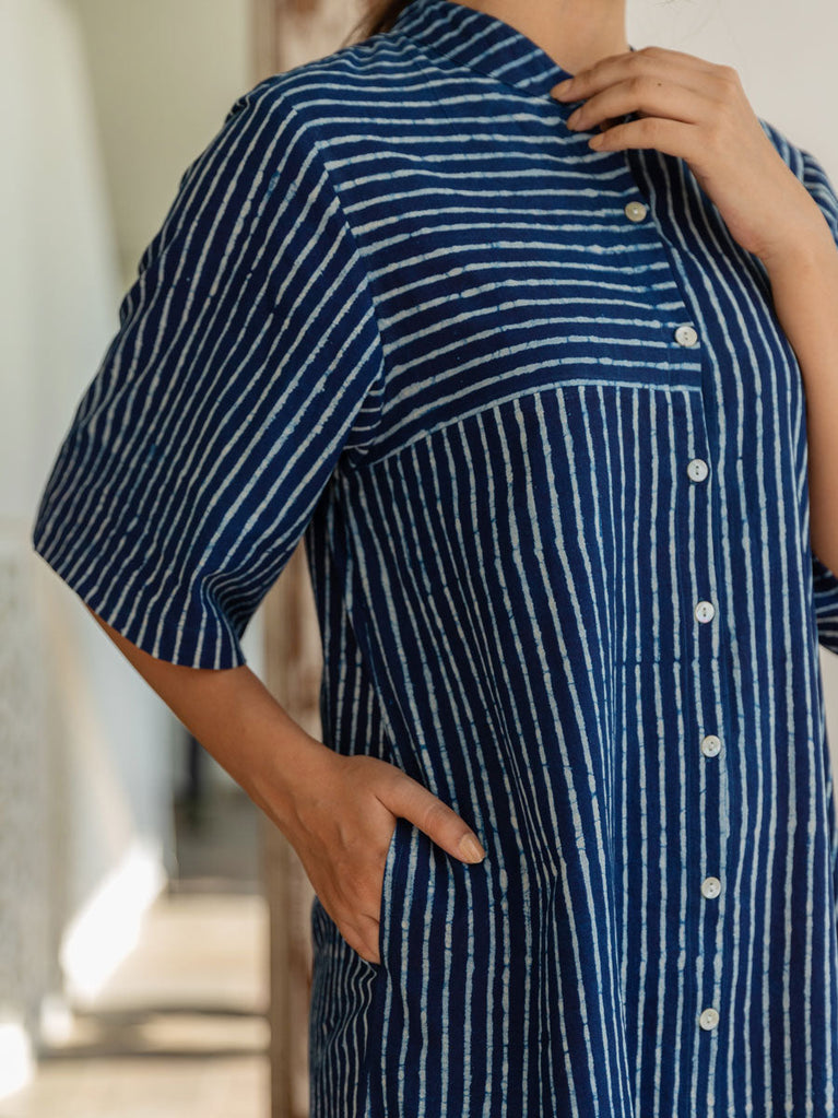 Lighthouse Organic Cotton Block Printed Dress with a Pocket