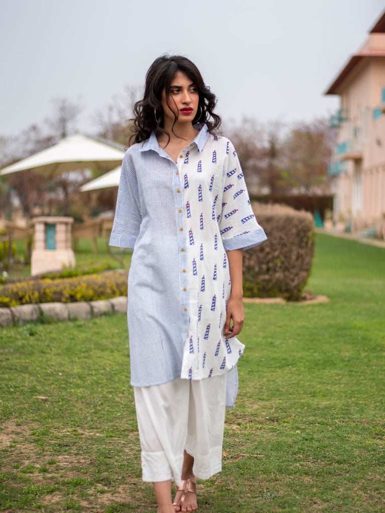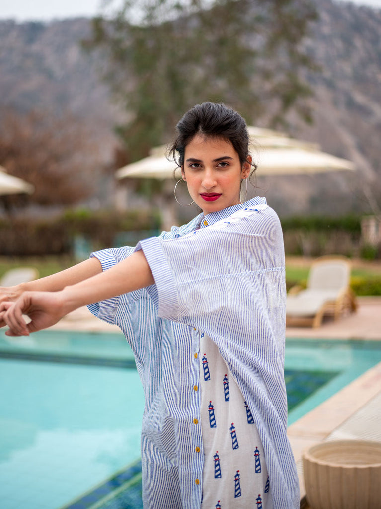 Lighthouse Over-Sized Asymmetrical Cotton Long Shirt