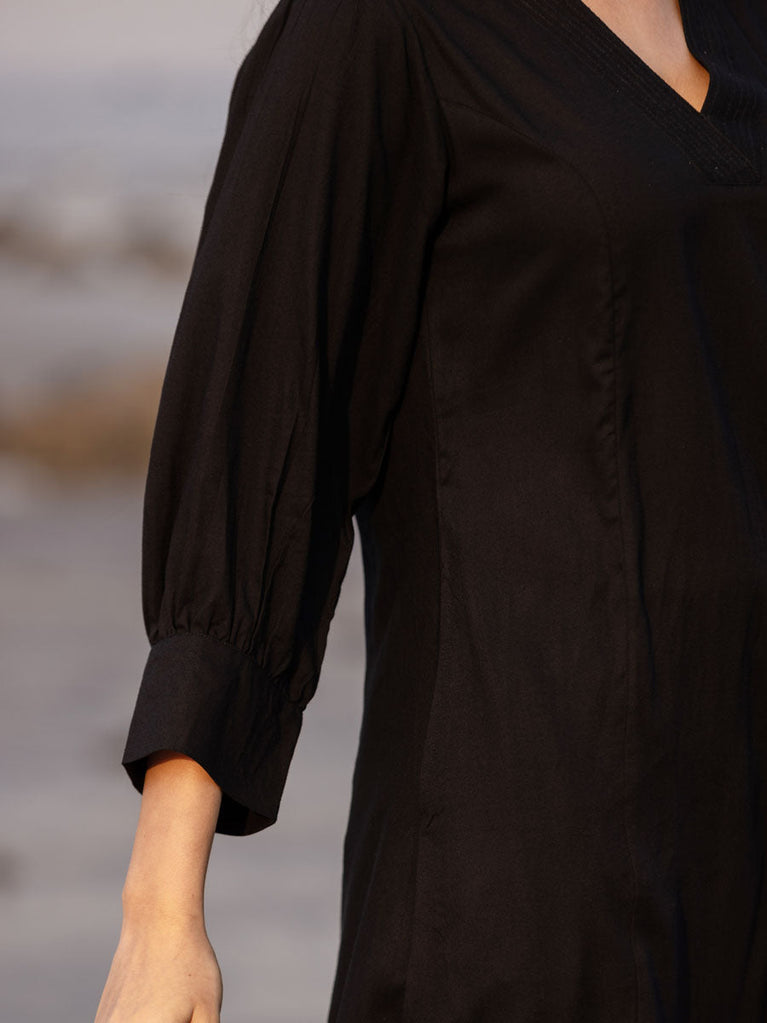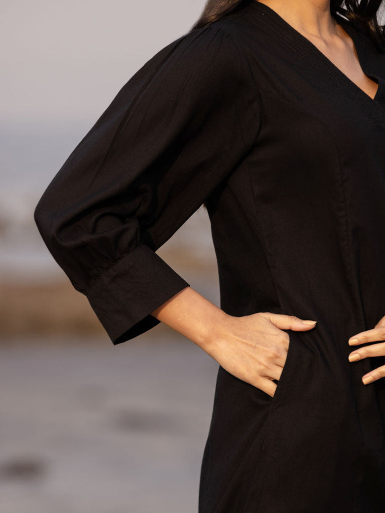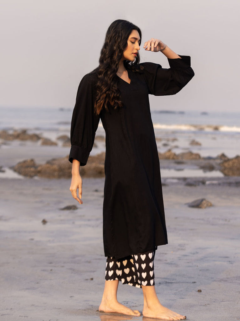 Malang Solid Black Slub Long Kurta