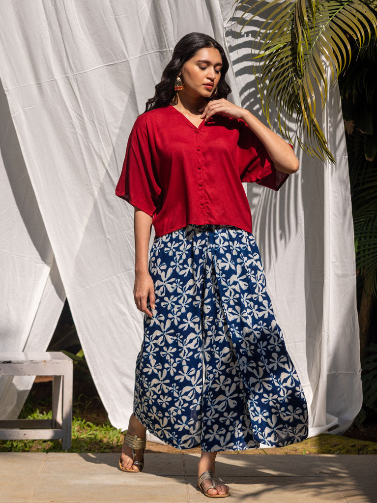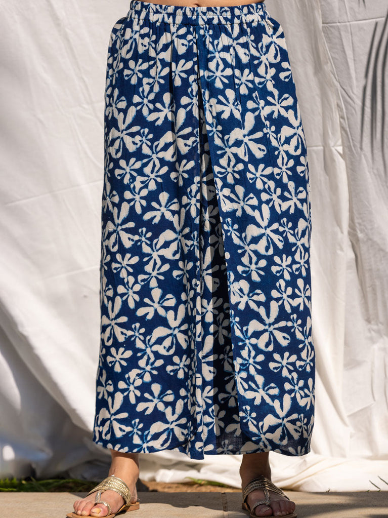 Lotus Meadow Slub Hand Block Print Palazzo Pants
