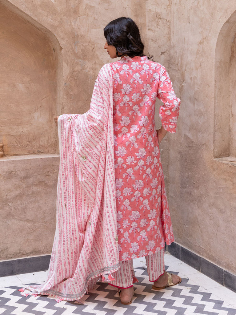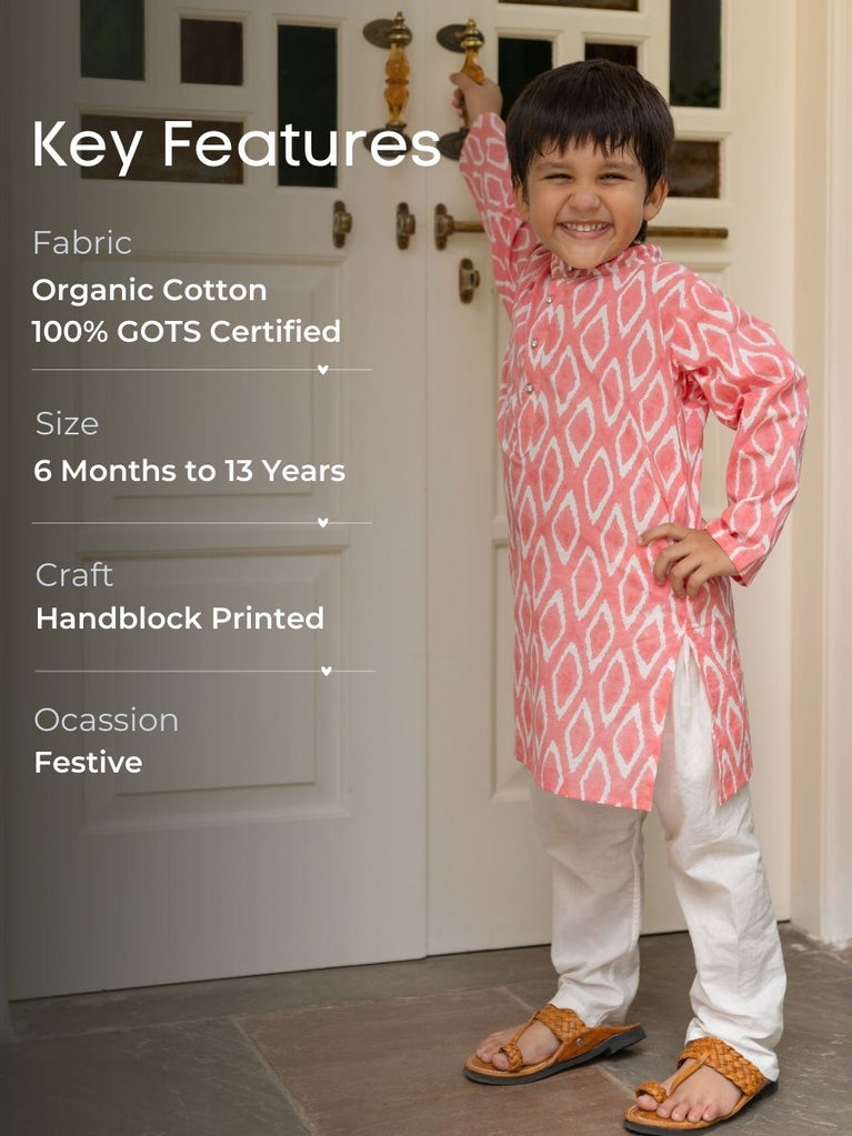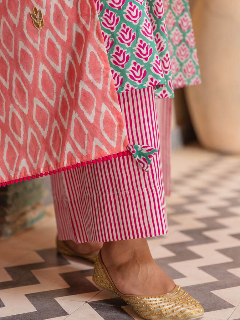 Pink Blossom Organic Cotton Block Printed Angrakha Set
